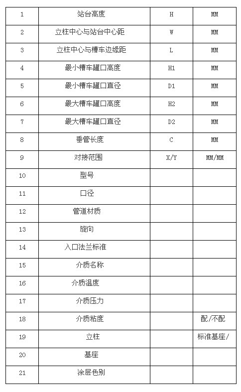 液化氣鶴管鶴管(陸用流體裝卸臂)基本參數(shù)